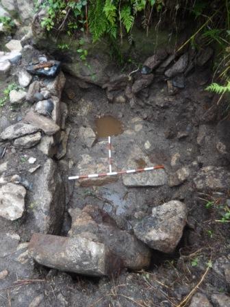 The second settlement pit uncovered in the lower section of the tye. the larger pole is a metre length.