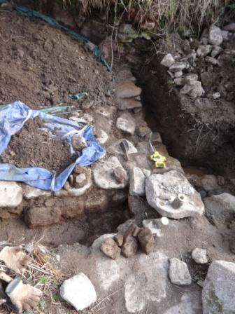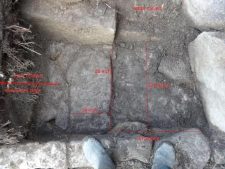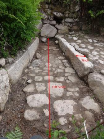 1. This shows dam at head of channel, which would have been timbered. It is here where the heavier tin crystals would have been collected.