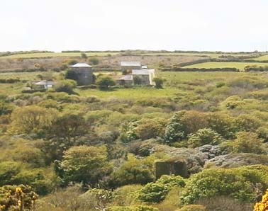 The view, from Carfury Quarry, of the ruin of 'The Mine Captain's house' (bottom right) and Mount Whistle. (see Newsletter May 2013)